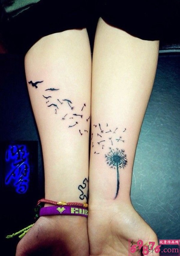 飞舞的蒲公英小鸟刺青_手臂纹身图案大全_纹身图吧
