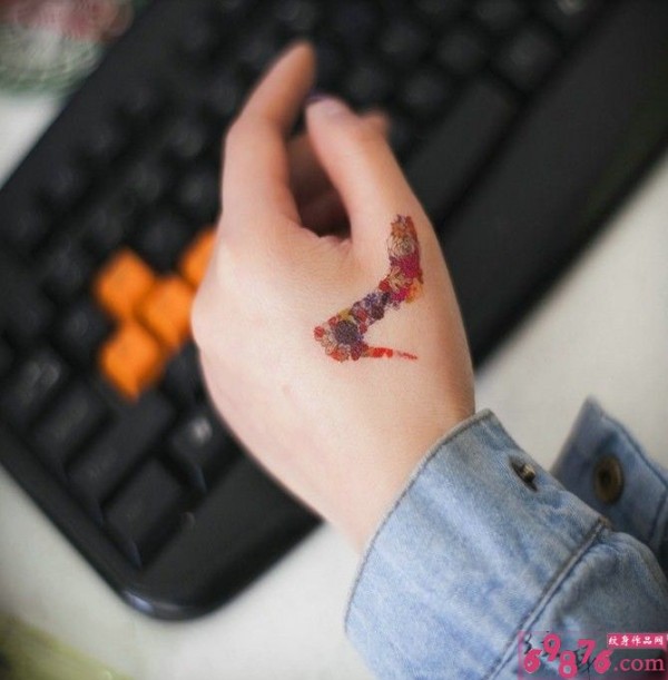 手背上一款彩色的死亡女郎纹身作品_手臂纹身图案大全_纹身图吧