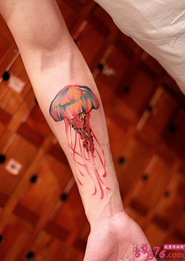明艳色彩的水母_手臂纹身图案大全_纹身图吧