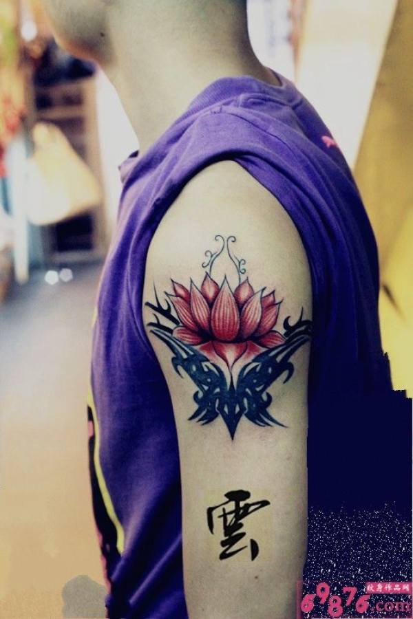 男士彩色莲花座纹身_手臂纹身图案大全_纹身图吧