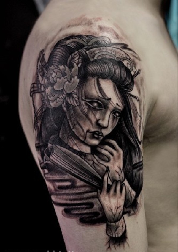 男人手臂颓废艺妓刺青图片_手臂纹身图案大全_纹身图吧