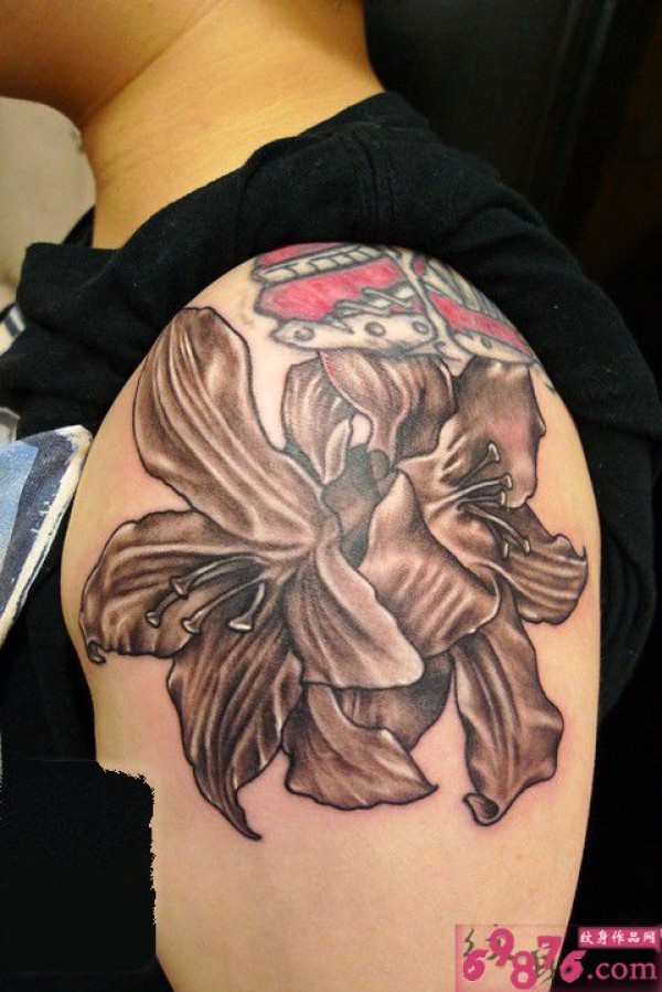 男人手臂高雅百合花纹身_手臂纹身图案大全_纹身图吧
