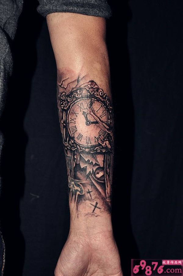 手臂复古时钟纹身_手臂纹身图案大全_纹身图吧