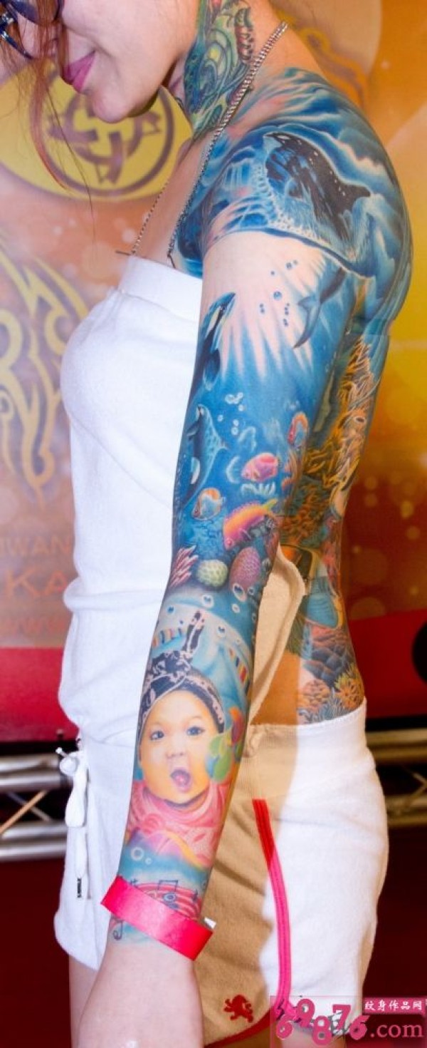 花臂上的很萌小孩纹身_手臂纹身图案大全_纹身图吧