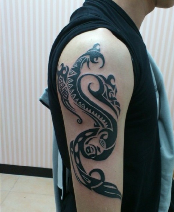 龙纹身手稿_一组老传统黑灰龙手稿纹身图案