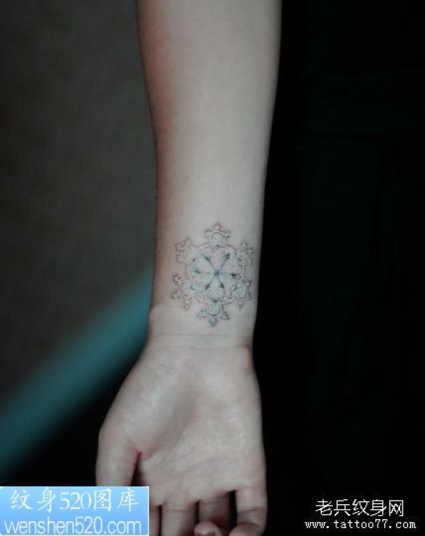 女孩子手腕处一款白色雪花纹身图案_手臂纹身图案大全_纹身图吧