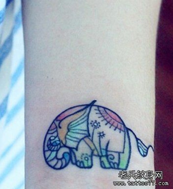 手腕彩色小象纹身图案_手臂纹身图案大全_纹身图吧