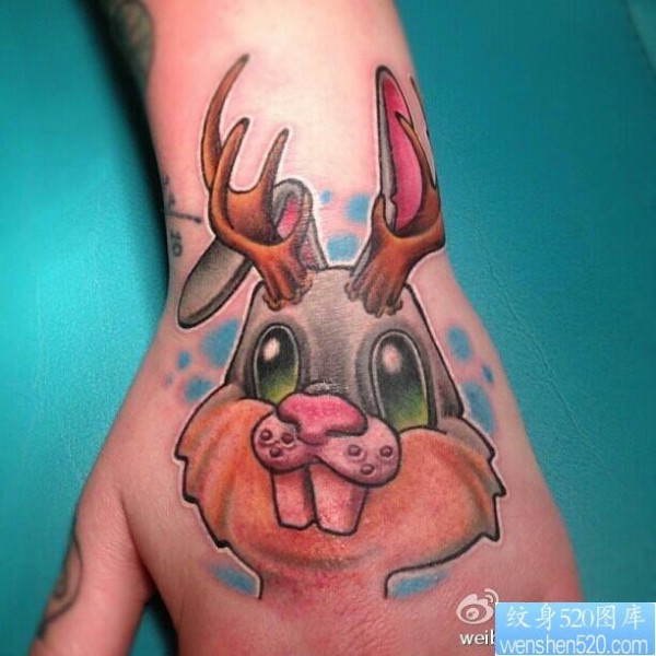 手背上的一幅可爱兔子纹身_手臂纹身图案大全_纹身图吧
