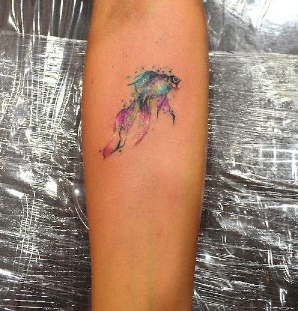 手腕上漂亮的小金鱼纹身_手臂纹身图案大全_纹身图吧