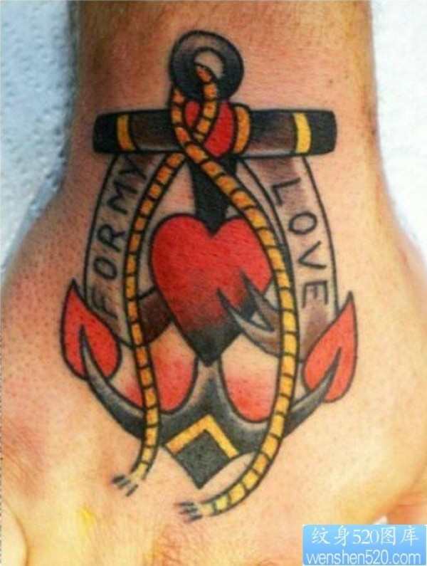 手背船锚文身图片由纹身520图库推荐_手臂纹身图案大全_纹身图吧