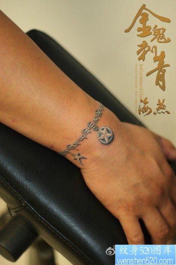 手腕一幅时尚经典的藏文手链纹身图片_手臂纹身图案大全_纹身图吧