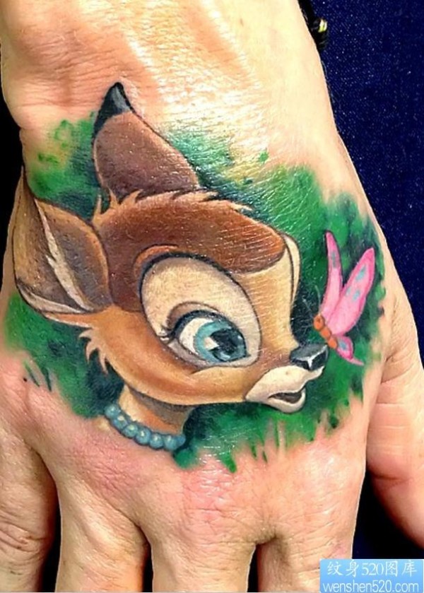 手背上一幅可爱的梅花鹿纹身图片_手臂纹身图案大全_纹身图吧