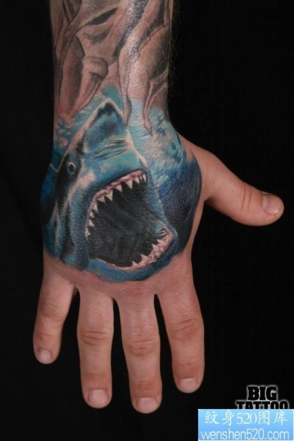 手背潮流很酷的鲨鱼纹身图片_手臂纹身图案大全_纹身图吧