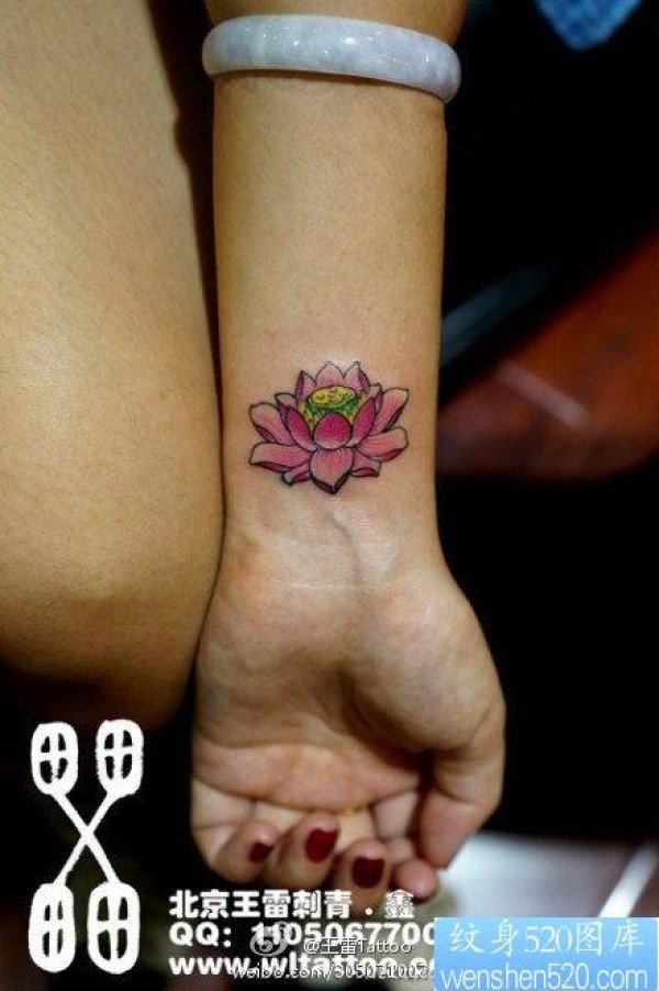 女人手腕小巧精美的粉莲花纹身图片_手臂纹身图案大全_纹身图吧