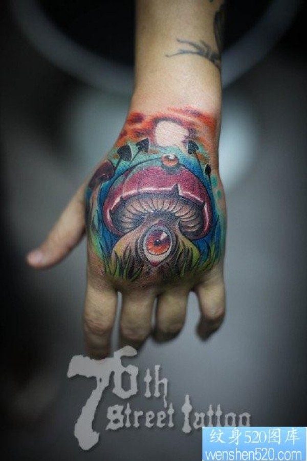 手背一幅长眼睛的蘑菇纹身图片_手臂纹身图案大全_纹身图吧