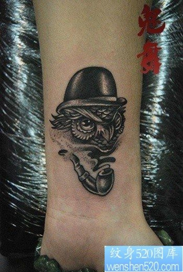 女人手腕流行潮流的猫头鹰纹身图片_手臂纹身图案大全_纹身图吧