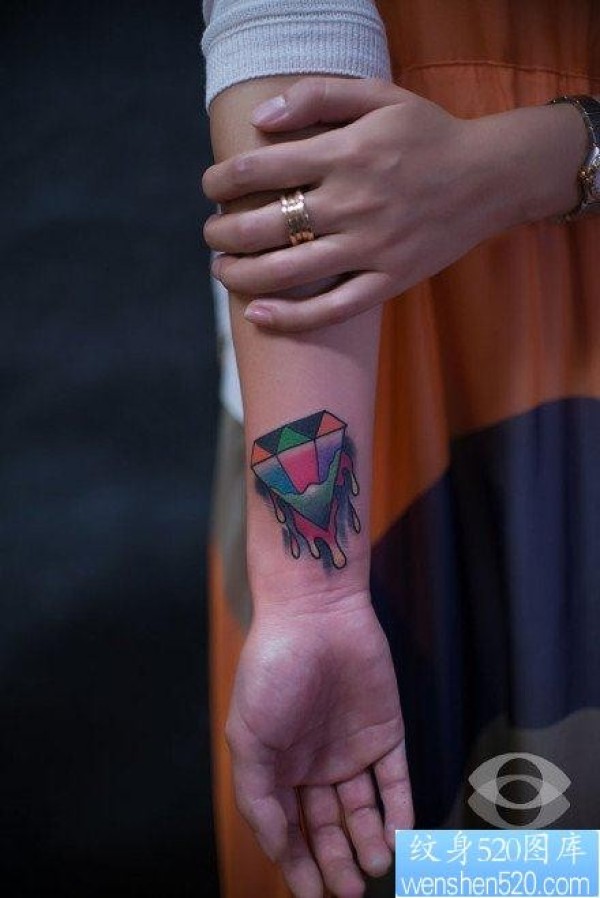 女人手腕精美时尚的彩色钻石纹身图片_手臂纹身图案大全_纹身图吧