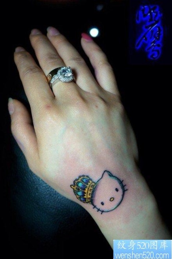 女人手腕可爱的猫咪与皇冠纹身图片_手臂纹身图案大全_纹身图吧
