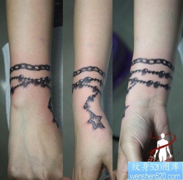 女人手腕处精美的五角星手链纹身图片_手臂纹身图案大全_纹身图吧