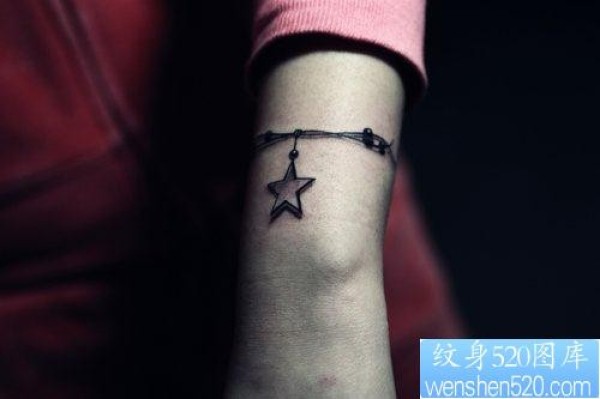 女人手腕处五角星手链纹身图片_手臂纹身图案大全_纹身图吧