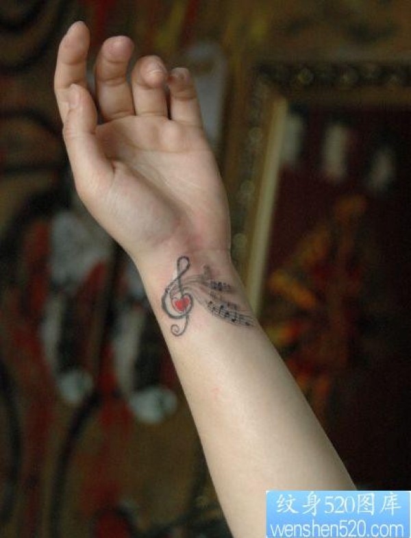 女孩子手腕潮流流行的音符纹身图片_手臂纹身图案大全_纹身图吧