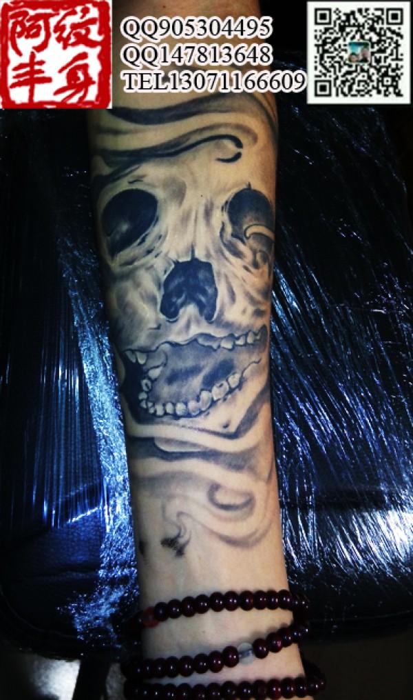 小臂抽象骷髅头图案纹身_手臂纹身图案大全_纹身图吧