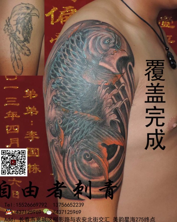 大臂鲤鱼纹身图案覆盖鸟纹身_手臂纹身图案大全_纹身图吧
