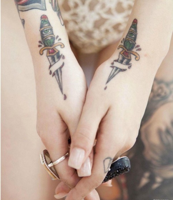 手背上一款彩色的死亡女郎纹身作品_手臂纹身图案大全_纹身图吧