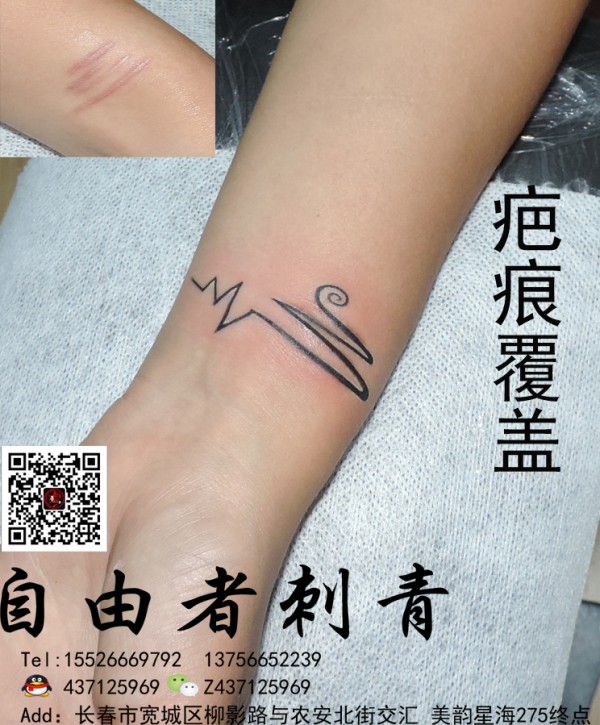 精美纹身图案遮盖手腕刺眼疤痕线条纹身图案遮_手臂纹身图案大全_纹身图吧