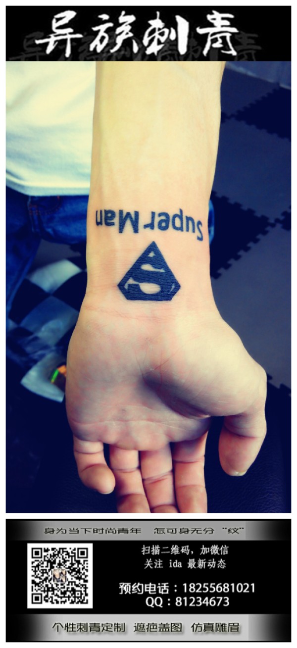 异族刺青推荐的精美纹身作品图集手腕上的超人_手臂纹身图案大全_纹身图吧