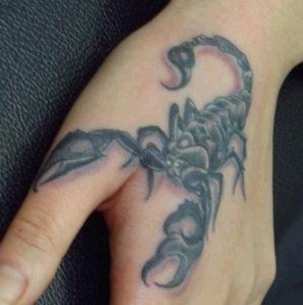 手掌虎口处的毒蝎纹身图纹身选用的是黑色,是_手臂纹身图案大全_纹身图吧