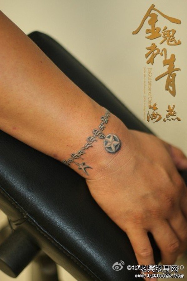 手腕一款潮流经典的藏文手链纹身图案_手臂纹身图案大全_纹身图吧