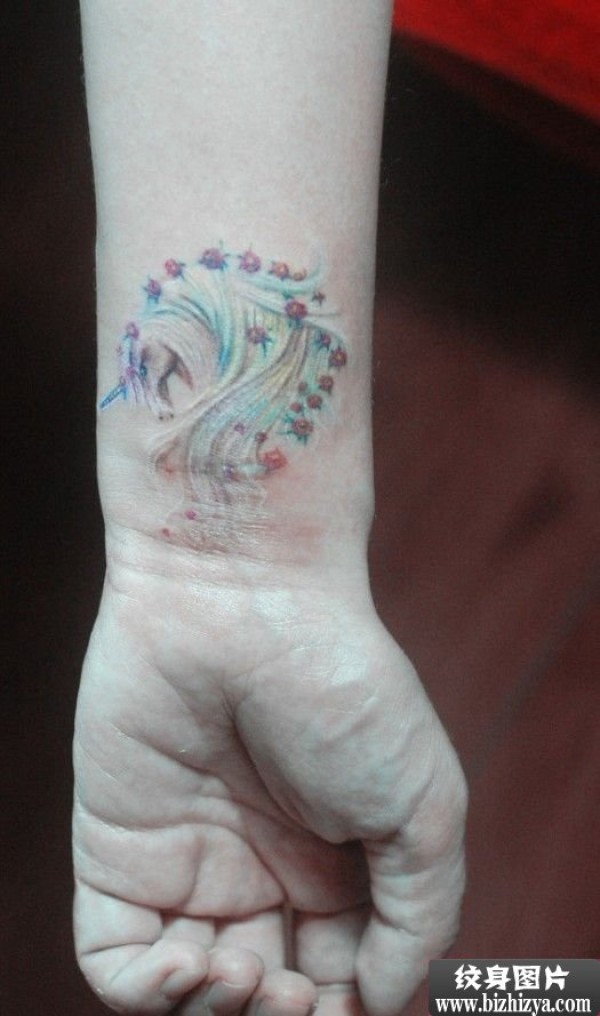 梦幻独角兽手腕纹身图案图片_手臂纹身图案大全_纹身图吧