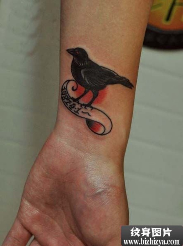 手腕乌鸦刺青图案图案图片_手臂纹身图案大全_纹身图吧
