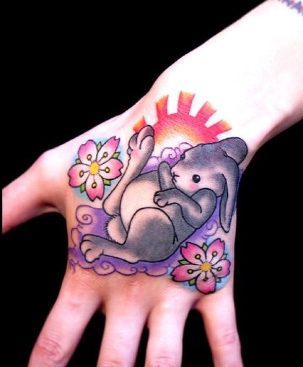 手背可爱的兔子纹身图案_手臂纹身图案大全_纹身图吧