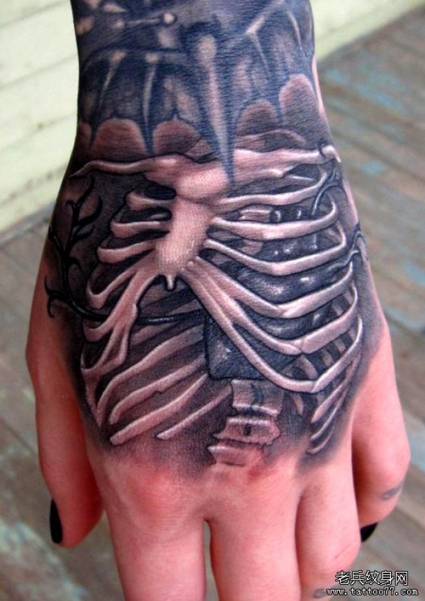 手背上一款个性骨架纹身图案_手臂纹身图案大全_纹身图吧