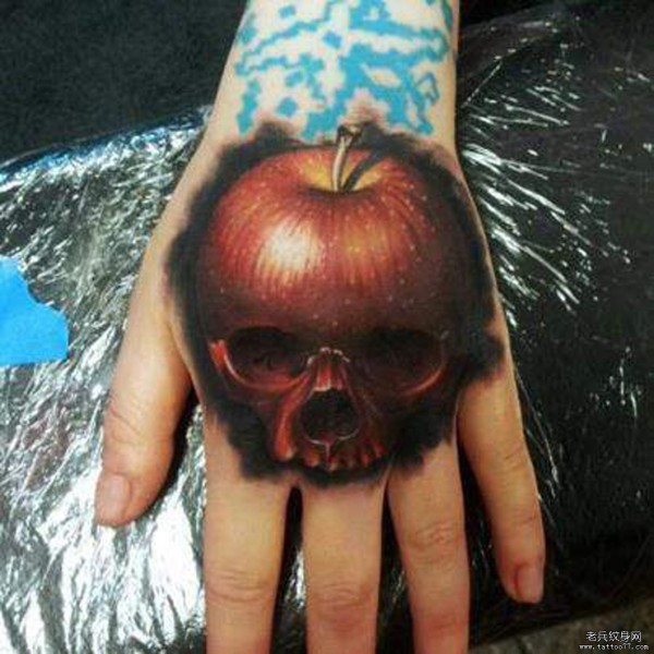 手背上一款个性的苹果纹身图案_手臂纹身图案大全_纹身图吧