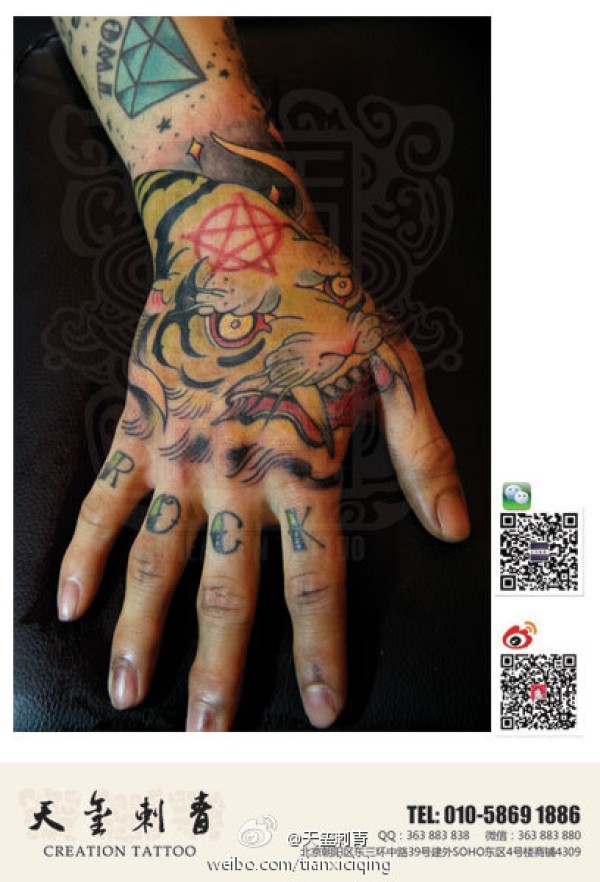 男生手背超帅经典的虎头纹身图案_手臂纹身图案大全_纹身图吧