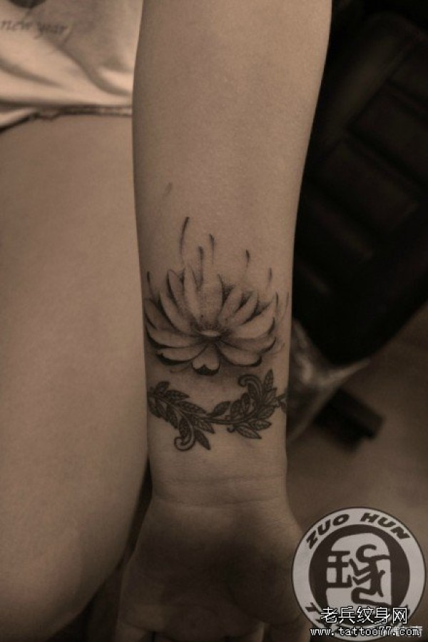 美女手腕小巧的黑灰莲花纹身图案_手臂纹身图案大全_纹身图吧