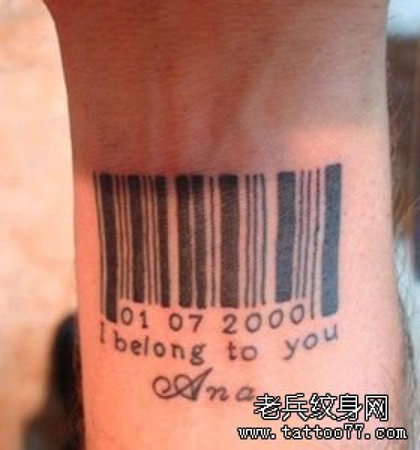 分享一款手腕条形码纹身图案_手臂纹身图案大全_纹身图吧