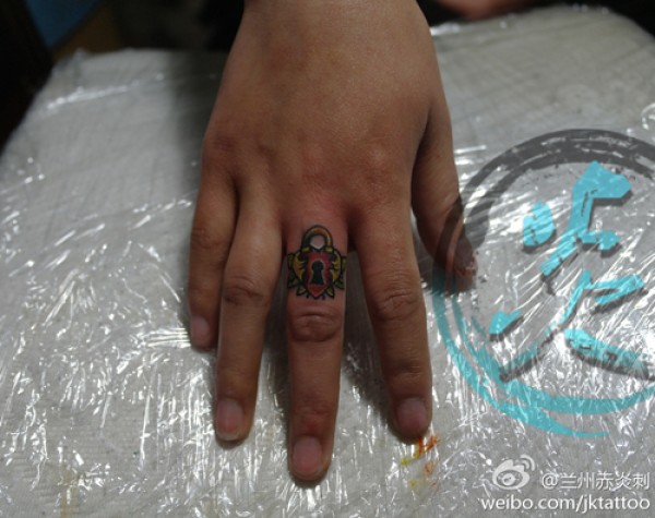 手指小巧时尚的爱心锁纹身图案_手臂纹身图案大全_纹身图吧