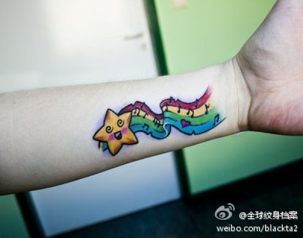 手腕可爱时尚的五角星音符纹身图案_手臂纹身图案大全_纹身图吧
