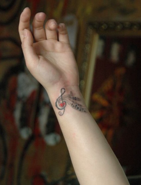女孩子手腕处时尚好看的音符纹身图案_手臂纹身图案大全_纹身图吧