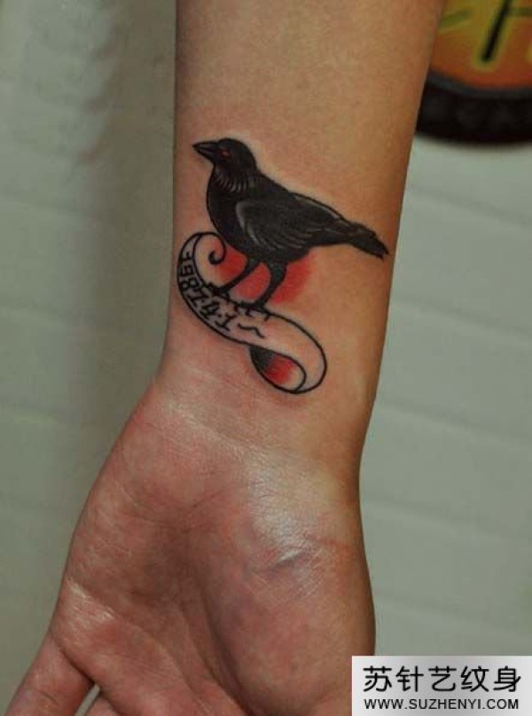 手腕乌鸦刺青_手臂纹身图案大全_纹身图吧