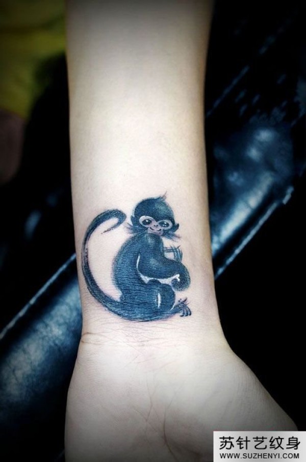 水墨猴子手腕纹身_手臂纹身图案大全_纹身图吧
