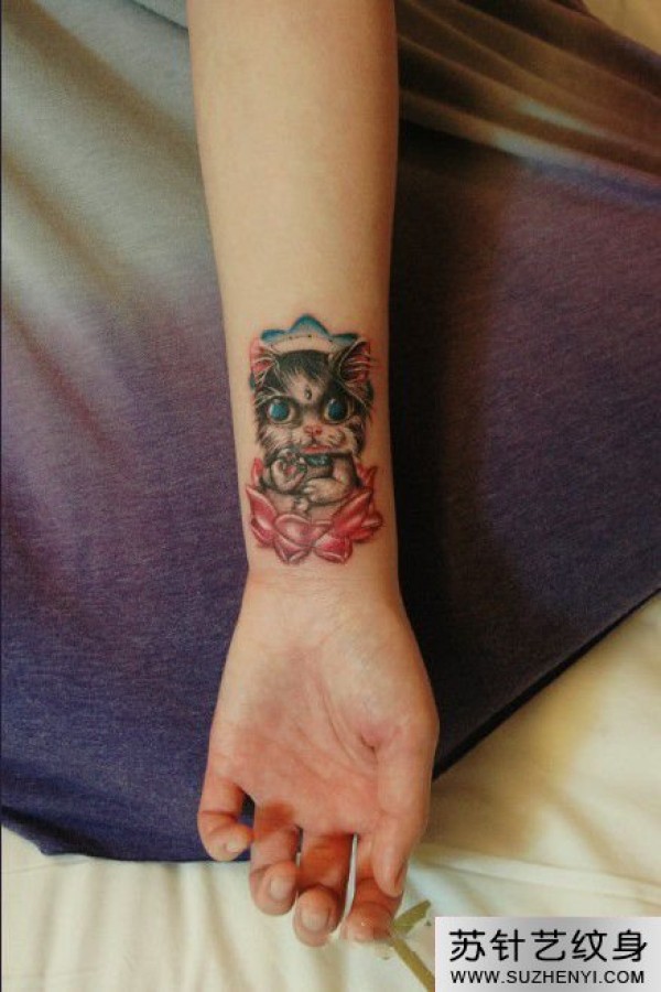 可爱猫国王手腕纹身_手臂纹身图案大全_纹身图吧