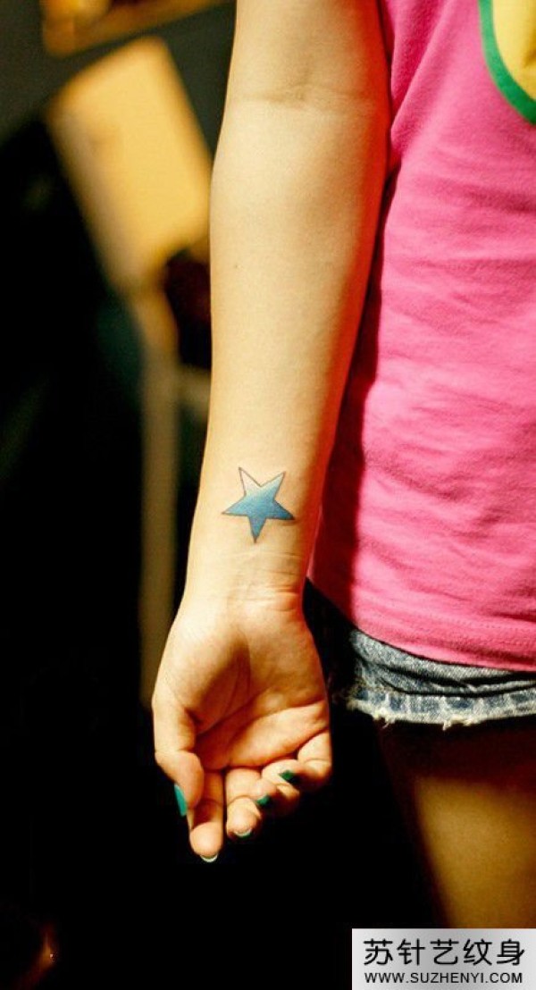蓝色小星星手腕纹身_手臂纹身图案大全_纹身图吧