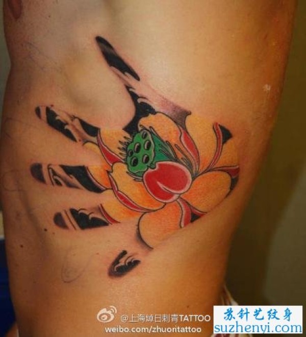 另类的手掌与莲花纹身_手臂纹身图案大全_纹身图吧
