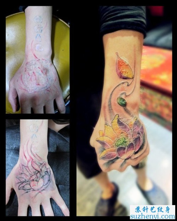 手背疤痕遮盖-莲花纹身_手臂纹身图案大全_纹身图吧