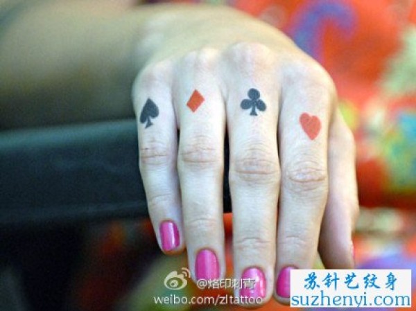 手指黑桃爱心梅花方片纹身_手臂纹身图案大全_纹身图吧